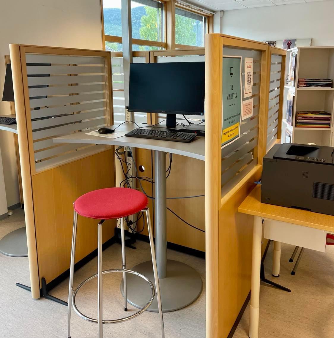 På biblioteket kan de ansatte hjelpe til med enkle PC-spørsmål i åpningstiden. Vi kan hjelpe til med å skrive ut, kopiere og skanne.